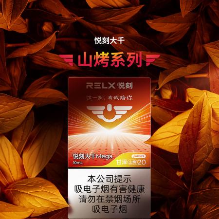 悦刻大千 Mega·甘泽(山烤 20) 被官方定位为 “POWER 国标烟弹”,是悦刻大千系列中最具解瘾度和爆发力的口味,堪称**“劲头之王”**。这款口味的优势在于其三大“Mega”规格: